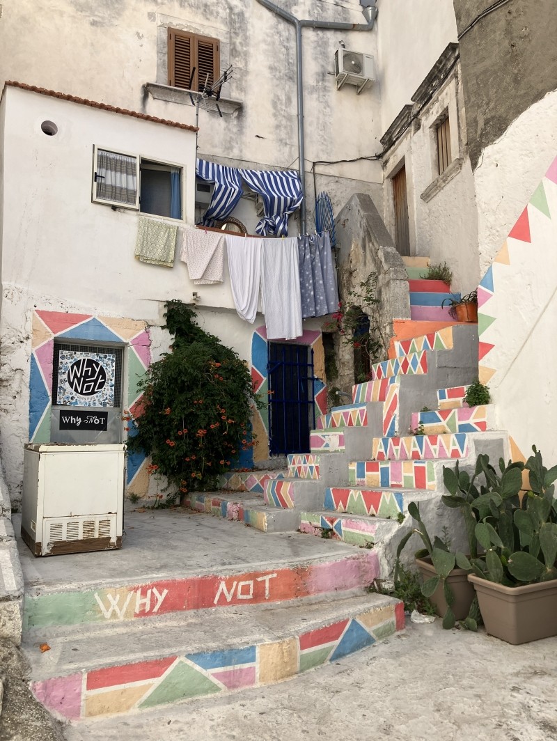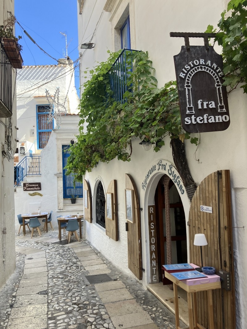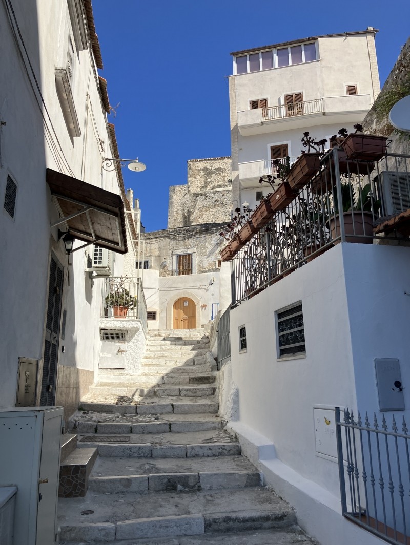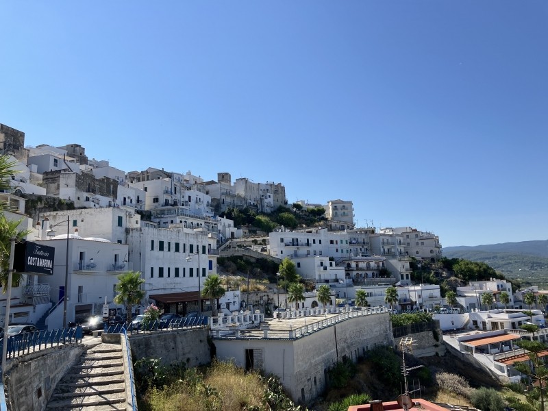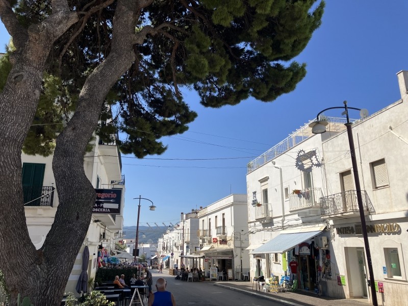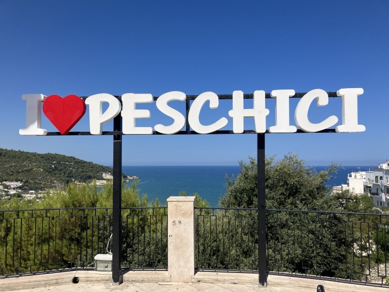 Accroché à sa falaise blanche plongeant dans l’Adriatique, Peschici est l’un des joyaux du Gargano. Ses ruelles étroites, bordées de maisons blanchies à la chaux, mènent à un château qui domine la mer et offre un panorama exceptionnel sur la côte. Le charme de Peschici réside dans son atmosphère authentique : petites places animées, artisans locaux, restaurants familiaux où déguster des pâtes fraîches aux fruits de mer ou une pizza cuite au feu de bois. En contrebas, la plage s’étire au pied des falaises et invite à la baignade.