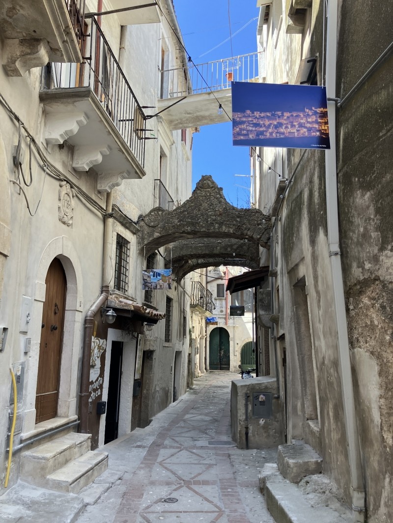 Ses ruelles médiévales, dominées par un imposant château normand, offrent une plongée dans l’histoire du Gargano. En se promenant, on découvre des églises anciennes, des arcades pittoresques et la fameuse ruelle du Bacio, si étroite que les amoureux s’y frôlent en la traversant 💋