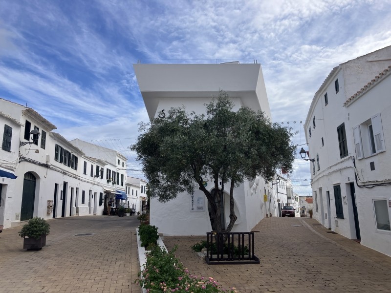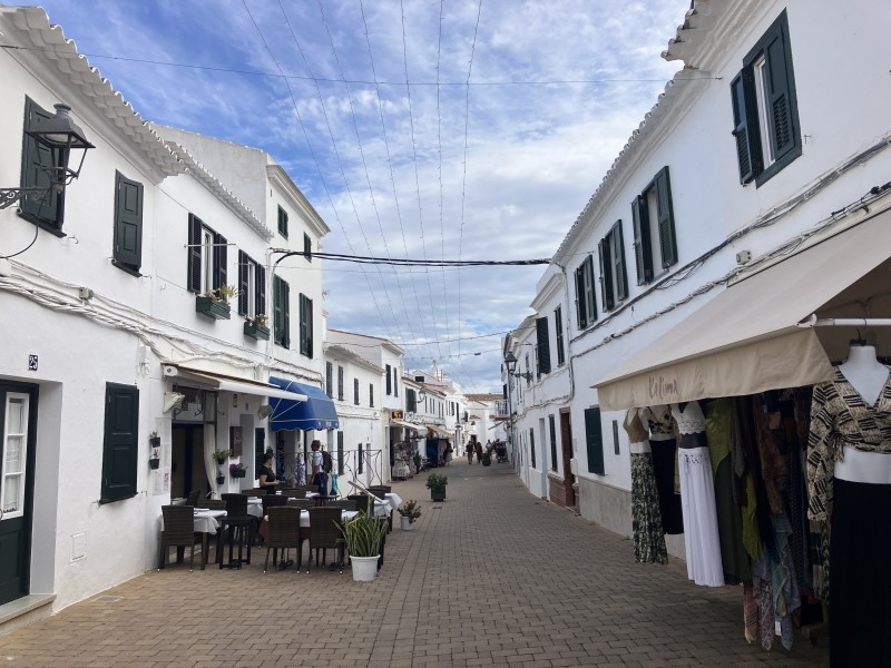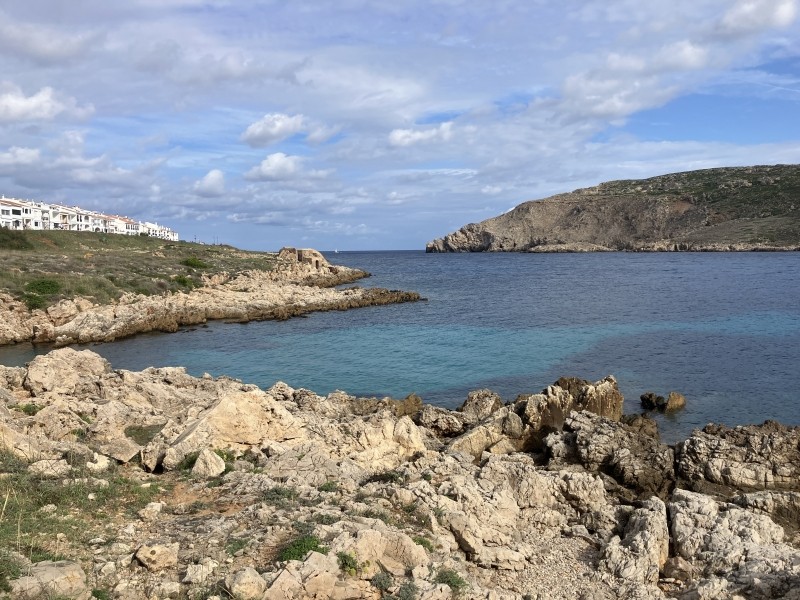 De là-haut, la vue sur la baie est superbe, et l’on aperçoit au loin le phare de Cavalleria. Un coin simple, lumineux et typiquement minorquin, parfait pour une pause tranquille au bord de l’eau.