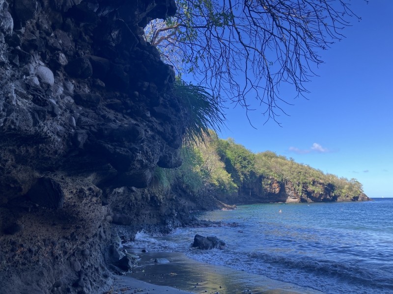 • La plage de l’Anse Noire est très ombragée avec ses nombreux arbres et cocotiers