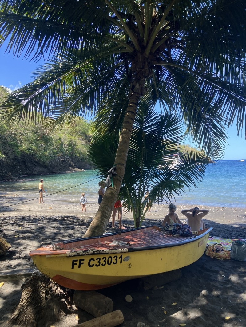 La plage de l’Anse Noire est très ombragée avec ses nombreux arbres et cocotiers